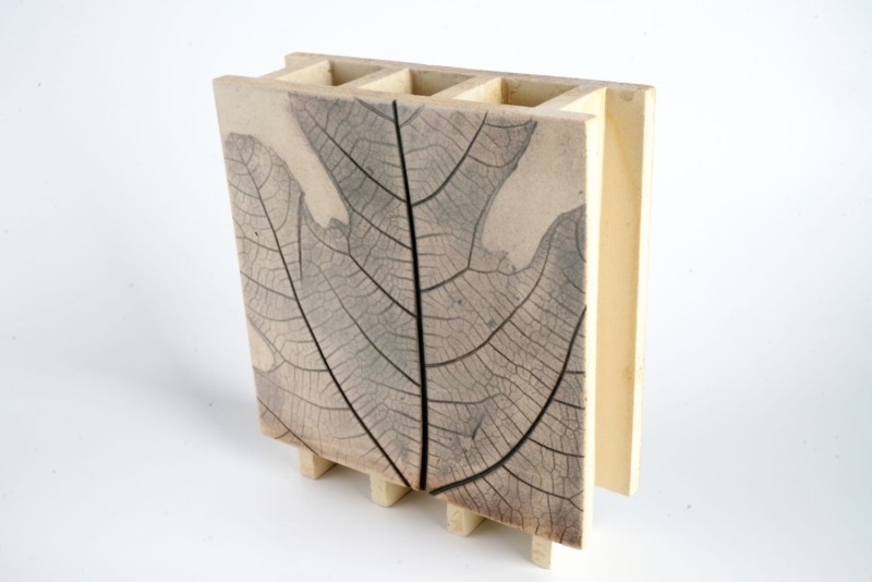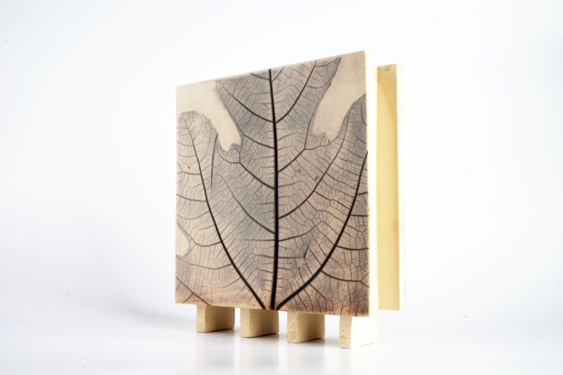 Die Vase wird aus hochwertigem, im Holzfeuer gebrannten Steinzeug gefertigt. Auf der Oberfläche ist ein Feigen-Blatt abgedrückt, deren feine Konturen mithilfe von Metalloxiden subtil hervorgehoben wurden. Dadurch entsteht eine authentische, organische Textur, die jedem Stück seinen eigenen Charakter verleiht.