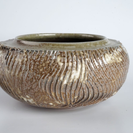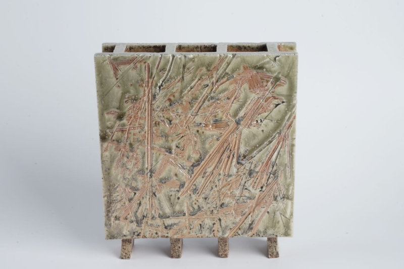 Die Vase wird aus hochwertigem, im Holzfeuer gebrannten Steinzeug gefertigt. Auf der Oberfläche ist Hartweizen-Stroh abgedrückt, deren feine Konturen mithilfe von Metalloxiden subtil hervorgehoben wurden. Dadurch entsteht eine authentische, organische Textur, die jedem Stück seinen eigenen Charakter verleiht.