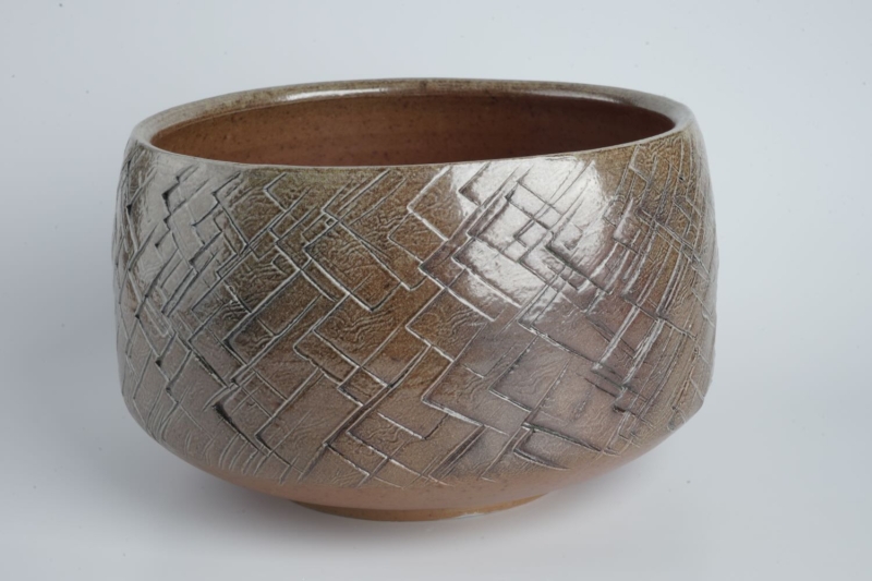Diese speziell für die Salzbrandtechnik entworfenen Gefäße zeichnen sich durch ihre ruhige, schlicht anmutende Formensprache aus. Die Oberflächen erhalten ihren besonderen Ausdruck durch präzise geschnittene oder mit einer Holzlatte geschlagene Strukturen, die je nach Stück zusätzlich mit Metalloxiden betont werden. So entstehen lebendige Texturen, die jedes Gefäß zu einem individuellen Einzelstück machen.