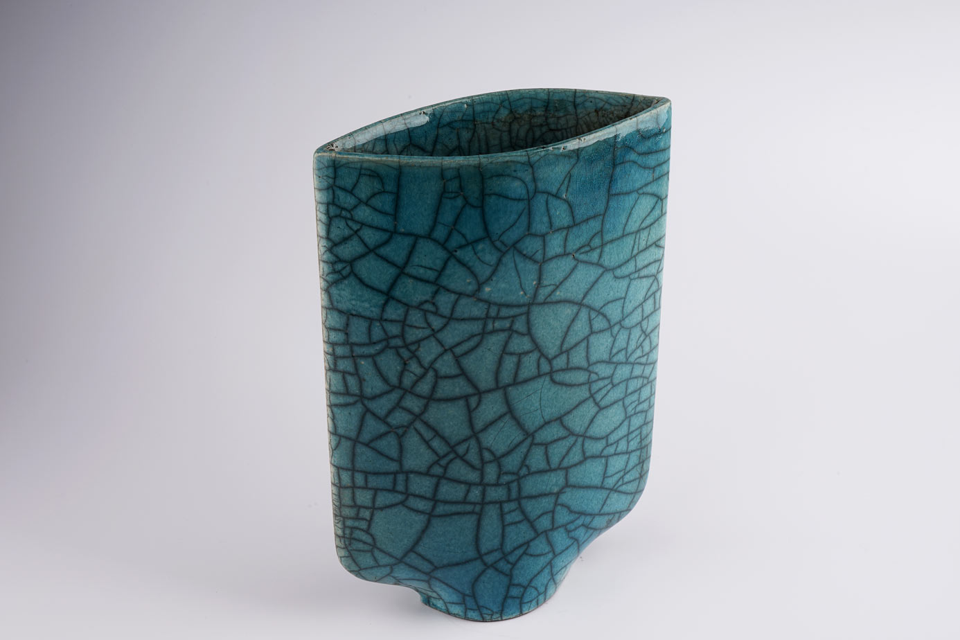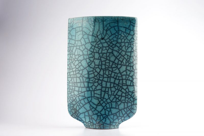 Die ursprüngliche Schönheit und Natürlichkeit der Rakuvasen ergibt sich aus dem Zusammenspiel der Strenge der Form und der ungestümen, unberechenbaren Kraft des Feuers. Hitze welche die Stücke zum Glühen bringt und eine sehr rasche Abkühlung malen zauberhafte, einzigartige Muster in die Glasuren der Keramik.
